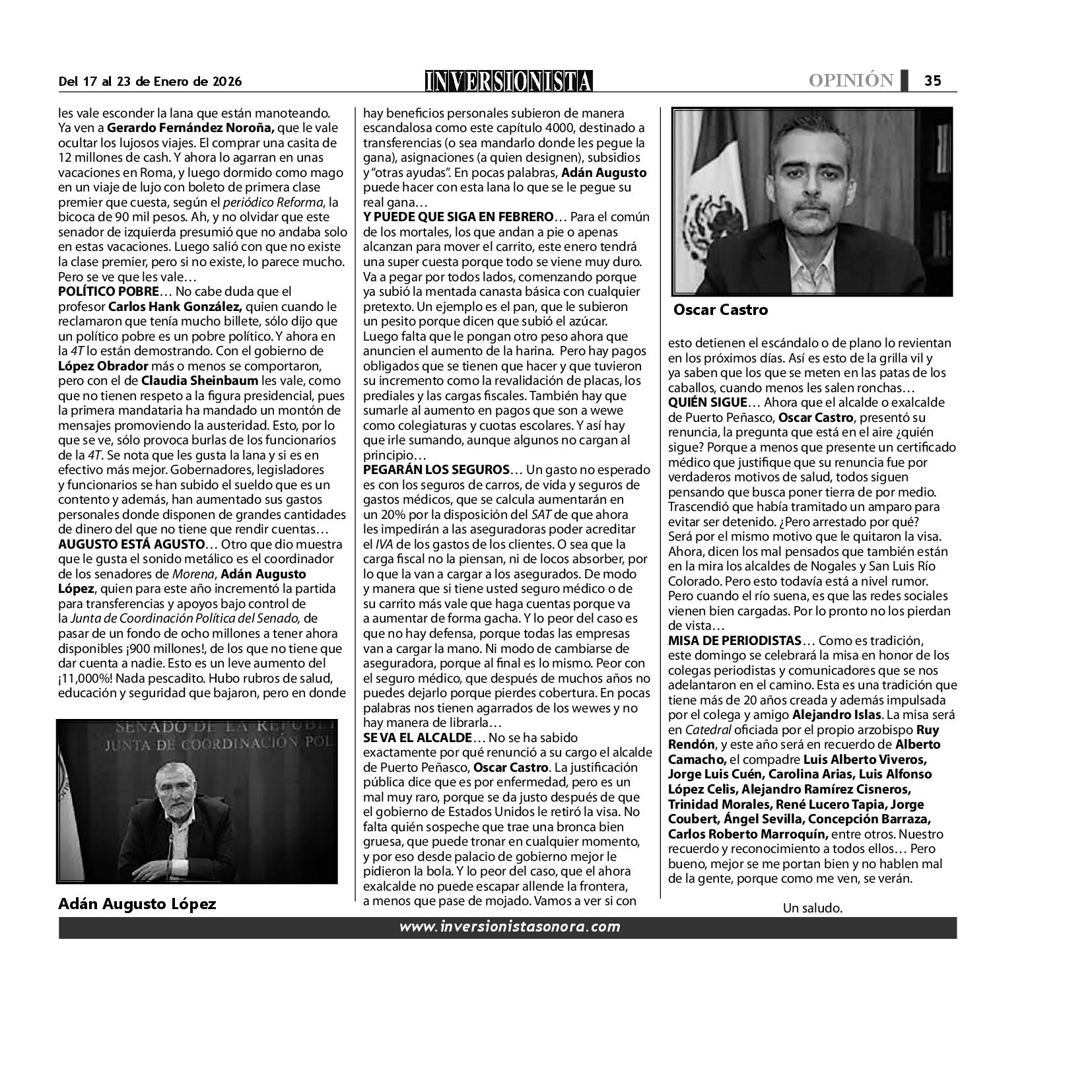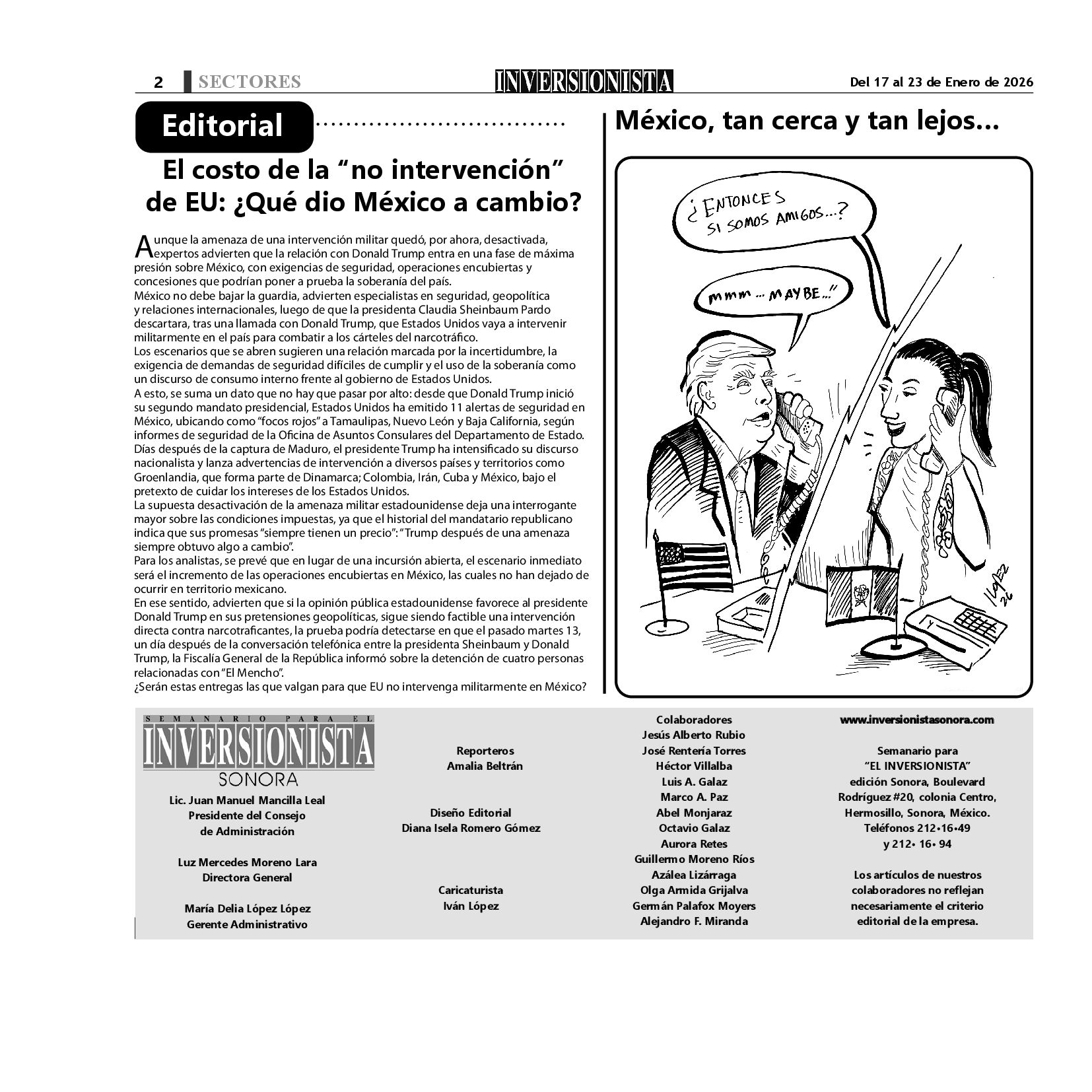 Todos los derechos reservados. Semanario para "EL INVERSIONISTA" edición Sonora, Boulevard Rodríguez #20, colonia Centro, Hermosillo, Sonora, México. Teléfonos 6622 121649 y 6622 121694. Contacto: contacto@inversionistasonora.com