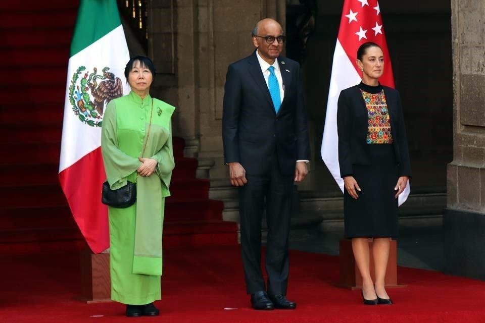 Durante la fotografía oficial ocurrió otro instante tenso. Sheinbaum extendió la mano hacia la esposa del líder asiático, pero Shanmugaratnam también extendió el brazo, indicándole que mantuviera la distancia.