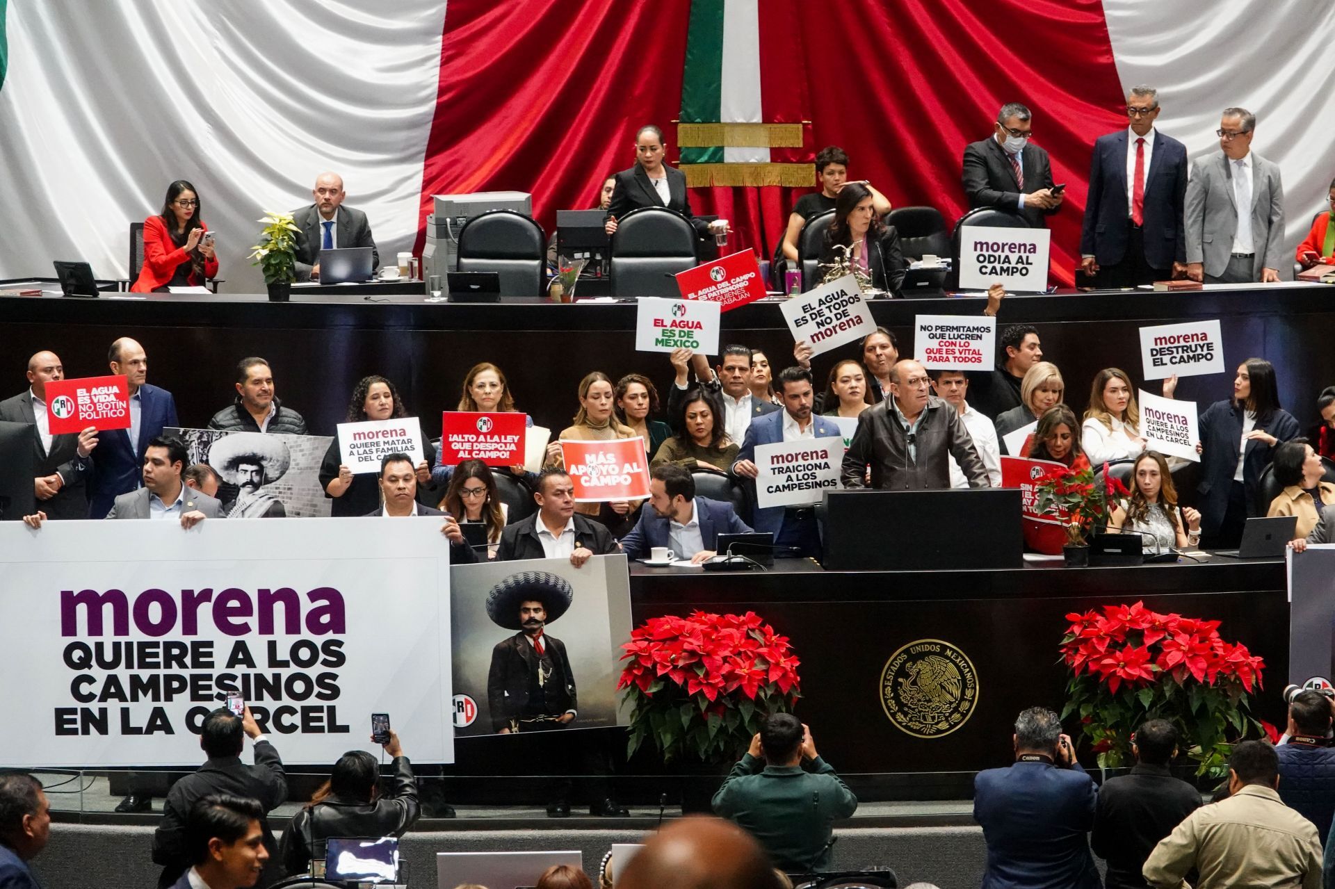 “Ustedes pretenden, con la sed de los animales, controlar a los ganaderos. Ustedes pretenden, con la sed de los cultivos y con la tierra agrietada, controlar a los campesinos y a los agricultores. Eso es lo que pretende Morena: arrodillar al pueblo de México ¡hasta por un méndigo vaso de agua!”, exclamó el legislador.